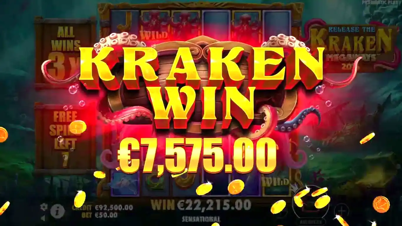 The Kraken Megaways has a high RTP (return to player) of around 96.5% and a high volatility, which means that wins can be large but are less frequent. This makes the slot attractive to players who prefer high risk for big wins.